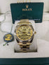 The Rolex with an automatic movement, finished in a full golden tone and featuring a matching golden dial, embodies pure luxury and timeless prestige. Its radiant dial and polished gold case create a powerful, high-end presence that stands out effortlessly.